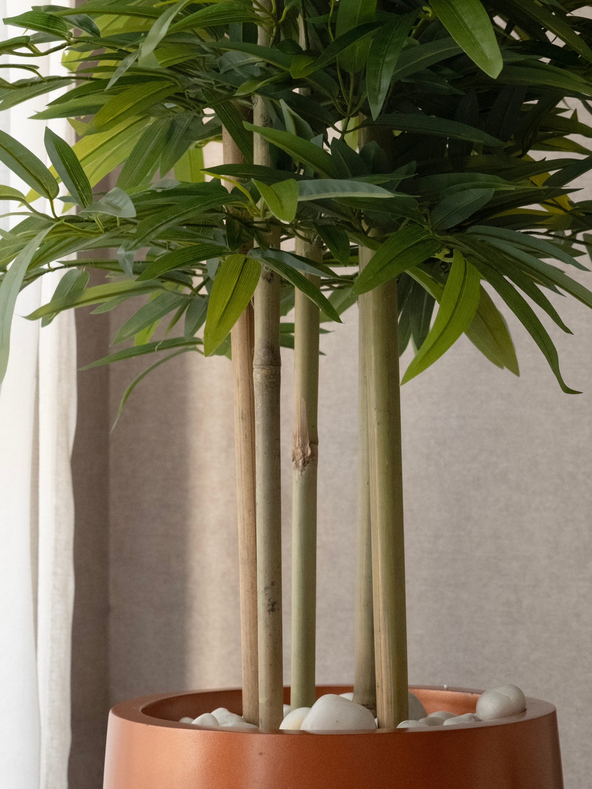 Add a touch of greenery to your space with this 6 FT Artificial Bamboo Tree. Designed with realistic PVC leaves and a natural wooden trunk, it comes pre-potted in a sleek black pot. Perfect for homes and offices, it offers a fresh look with zero maintenance—no watering or sunlight needed.