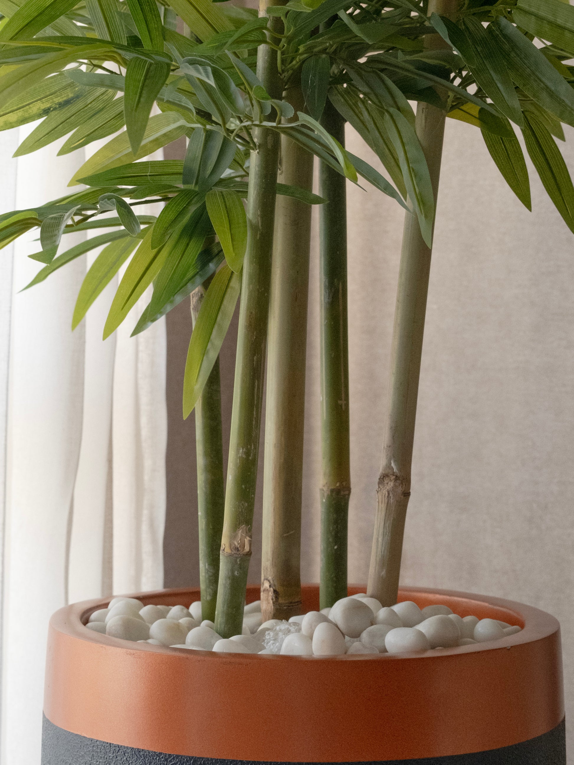 Make a bold green statement with this 7 FT Artificial Bamboo Tree. Its tall, elegant form and lifelike bamboo leaves instantly elevate any space, from modern homes to professional interiors. Set in a sleek black pot and designed for effortless styling, this tree delivers year-round freshness with absolutely no maintenance.