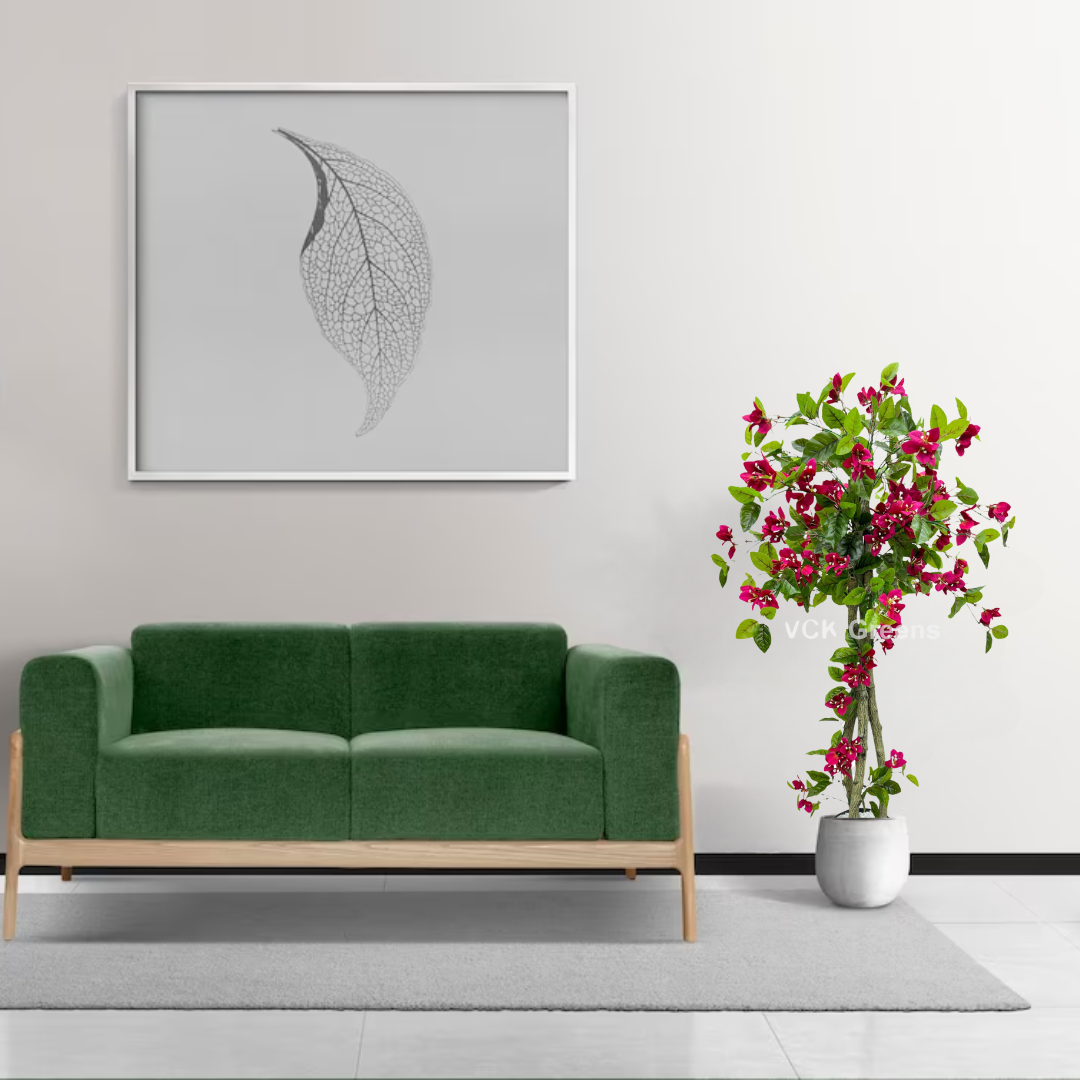 Introduce a touch of elegance to your home or office with our Artificial Bougainvillea Tree. Standing at 4.5ft tall and featuring lifelike flowers, this tree is the perfect addition to any space. Its vibrant colors and maintenance-free design make it ideal for any setting, from restaurants and cafes to hotel lobbies and banquet halls. Bring the beauty of nature indoors with this stunning piece of decor.