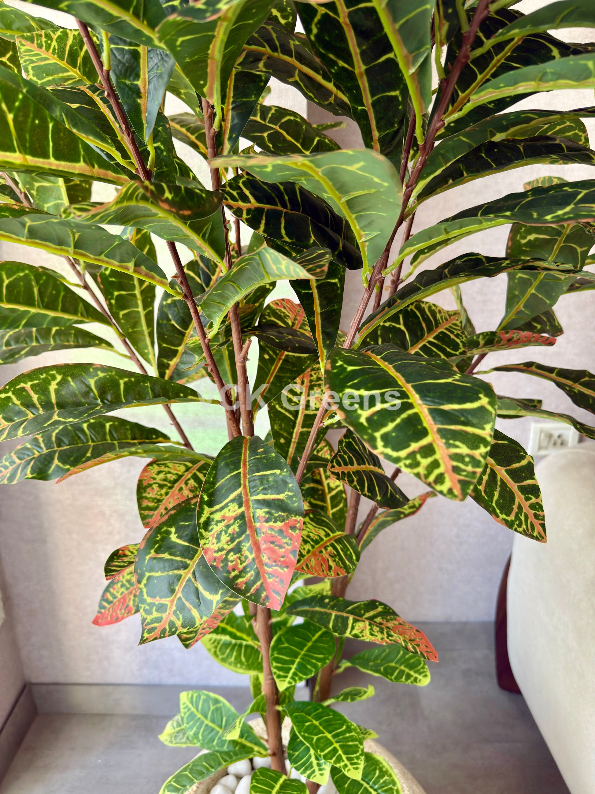 Enhance any space with our Artificial Croton Plant 5ft. With realistic croton leaves, it's perfect for home or office decor. Ideal for office lobbies, hotels, restaurants, and clubs. Create a natural atmosphere with none of the maintenance.