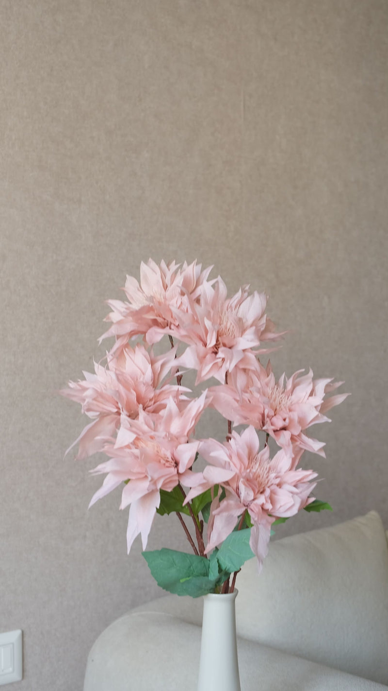 Add a touch of elegance and timeless beauty to your décor with this stunning Artificial Dahlia Flower Stem. Designed with detailed petals and vibrant green leaves, this flower brings a natural and graceful look to any space without the need for maintenance. The soft, layered petals create a full and realistic bloom, making it perfect for vases, floral arrangements, wedding décor, home styling, or event decoration.