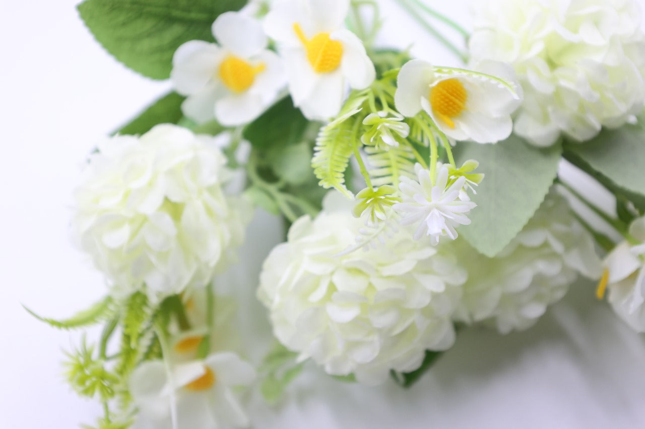 Our fake flowers are made from environmentally safe plastic, harmless and stable, plastic greenery keep fresh color without any care. All they require is an occasional dusting and a wipe with a damp cloth to remove any dirt.