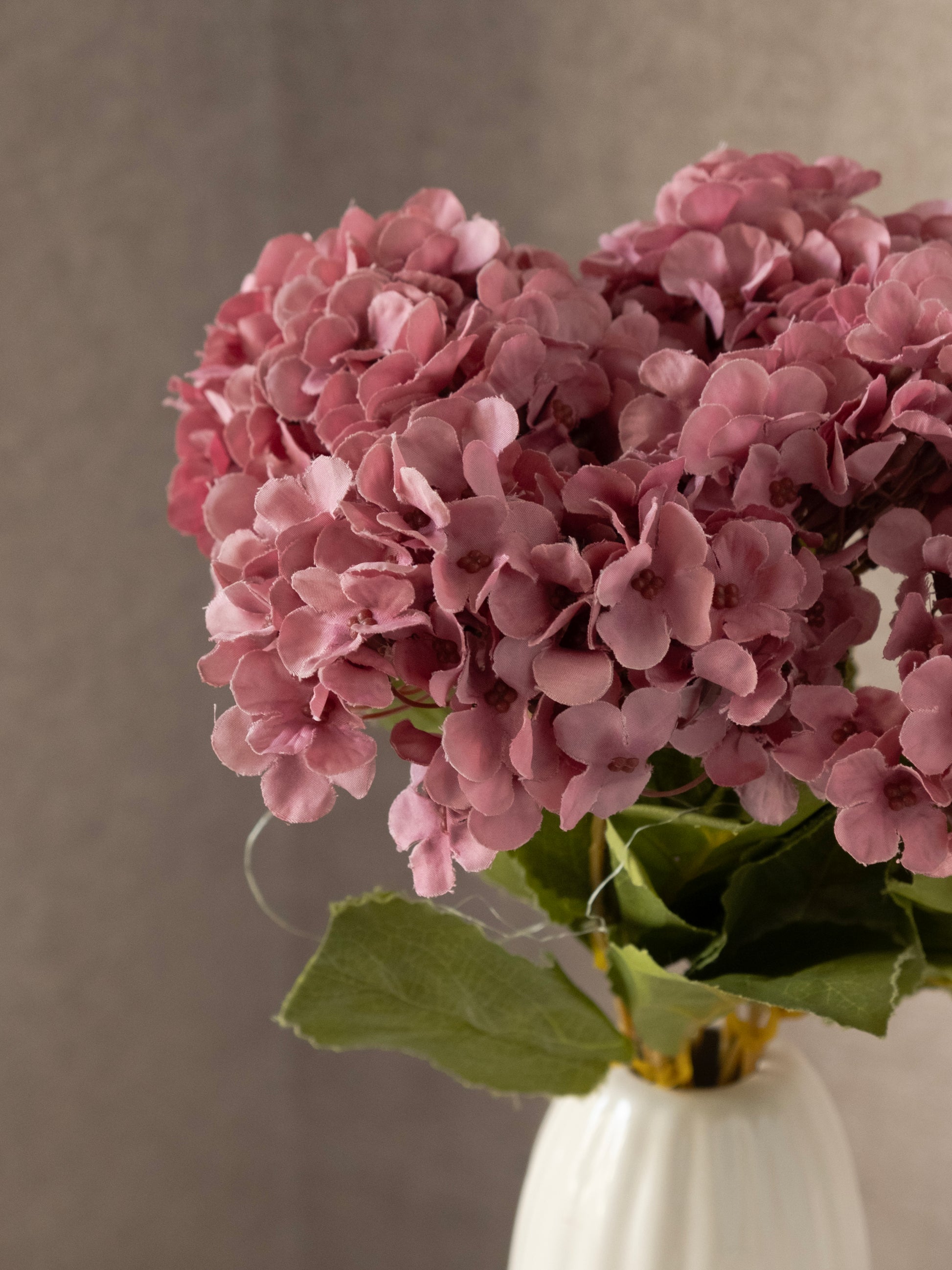Add a touch of soft elegance to your décor with this beautiful artificial hydrangea flower bunch. Featuring full, round bloom heads with delicate petals and realistic green leaves, this bunch gives a natural and fresh appearance without any maintenance. Perfect for vases, table décor, wedding arrangements, and festive decorations.
