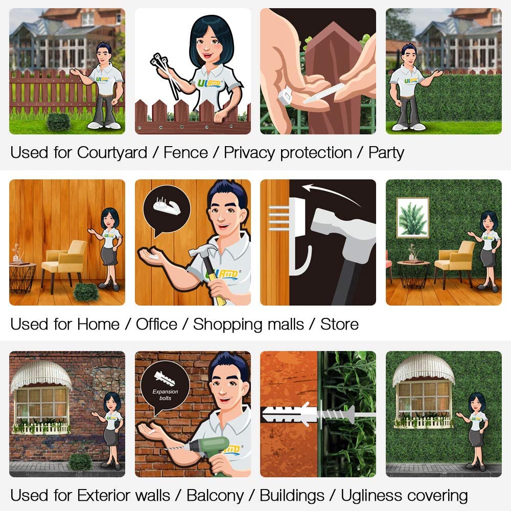 Our faux green wall panels are made from environmentally safe plastic, harmless and stable, plastic greenery keep fresh color without any care. All they require is an occasional dusting and a wipe with a damp cloth to remove any dirt. Our premium range of green wall panels are UV-tested, meaning they won’t fade in the sun very soon. We recommend to not use any pressured water pipes to clean wall panels..