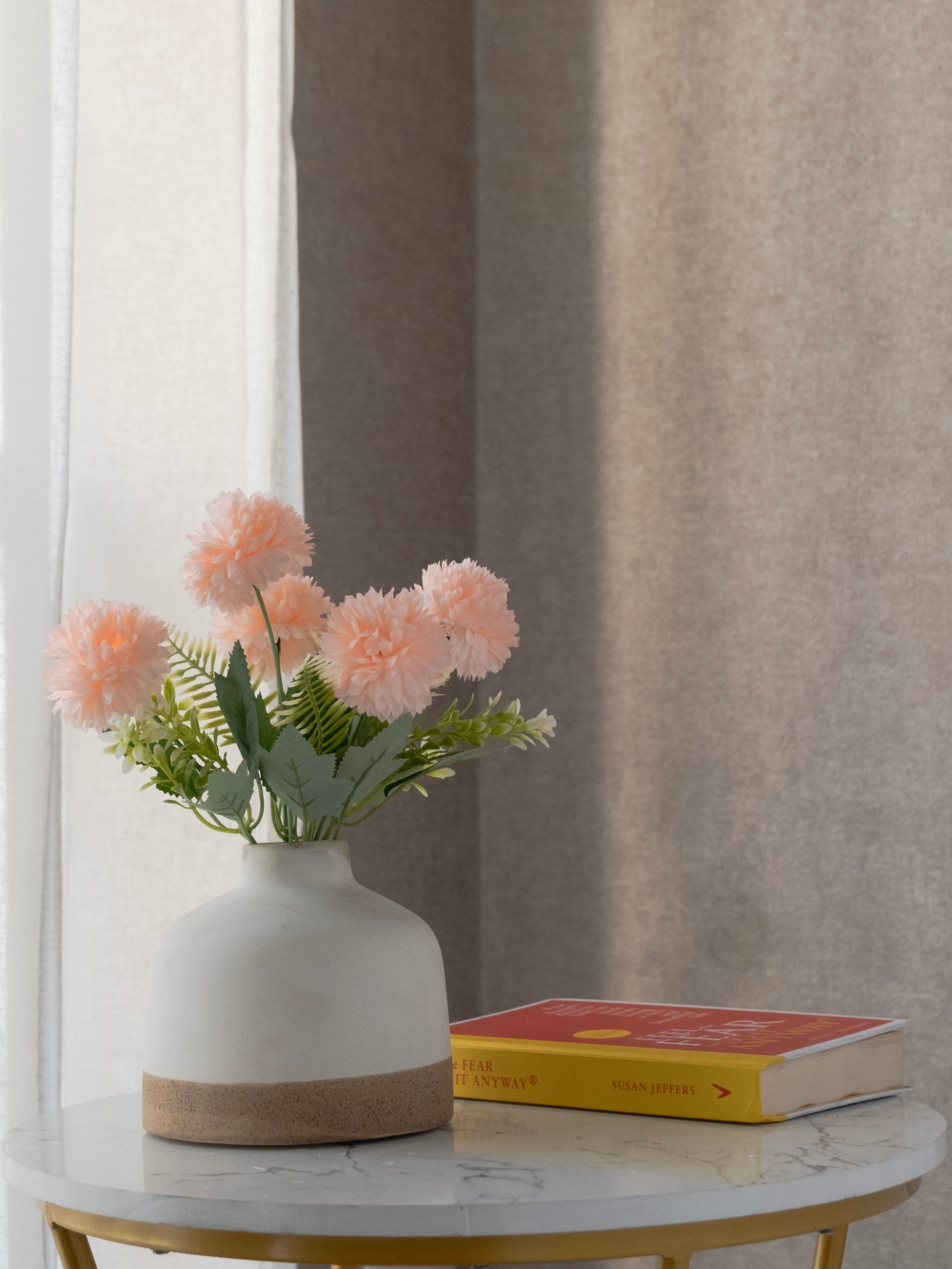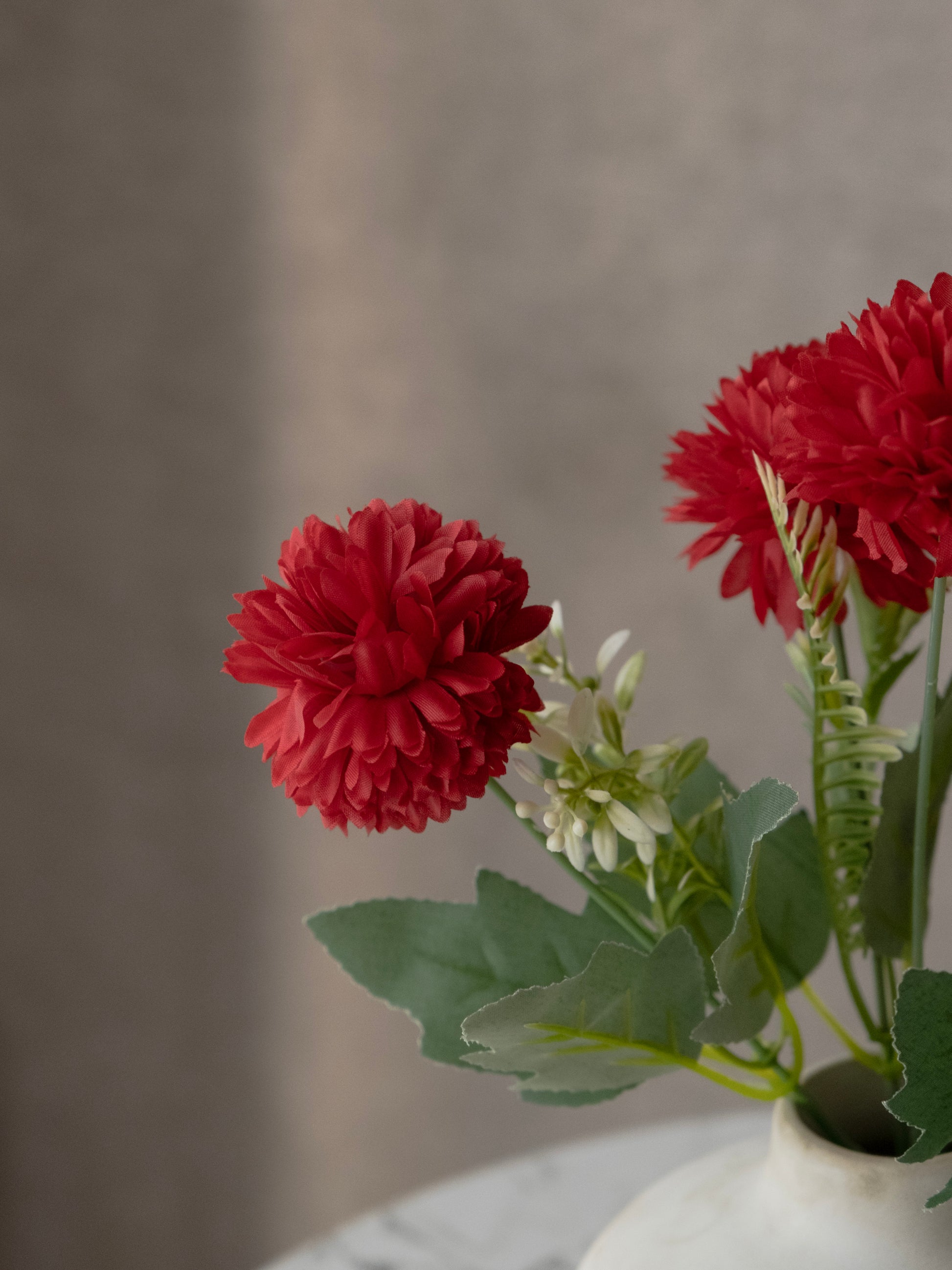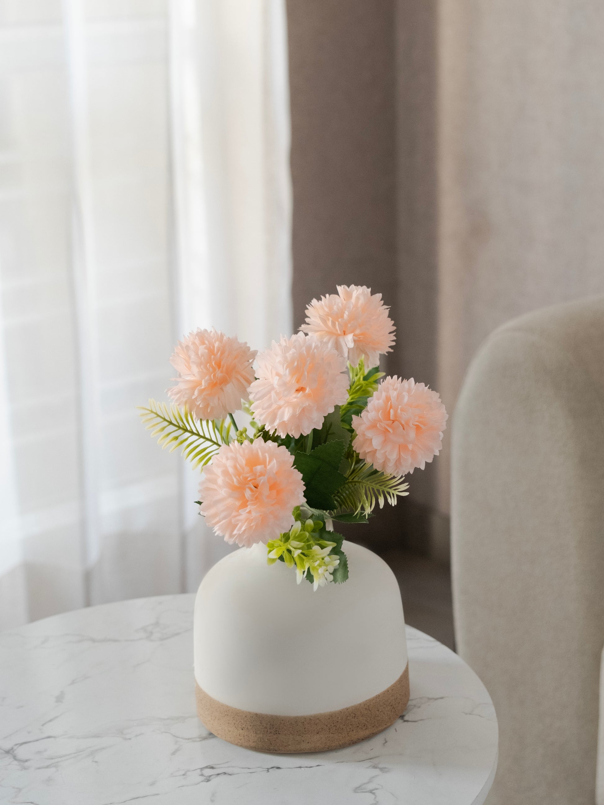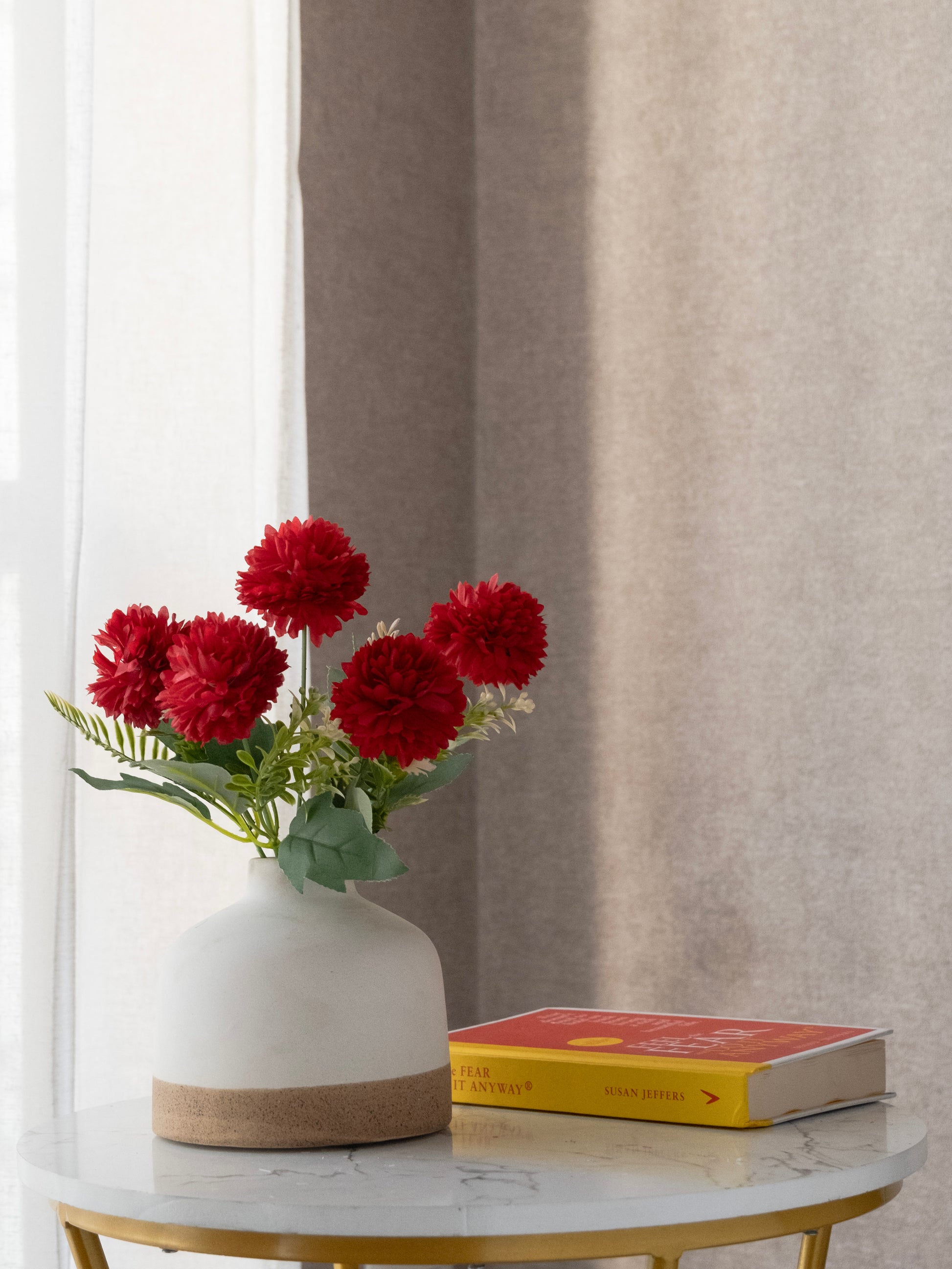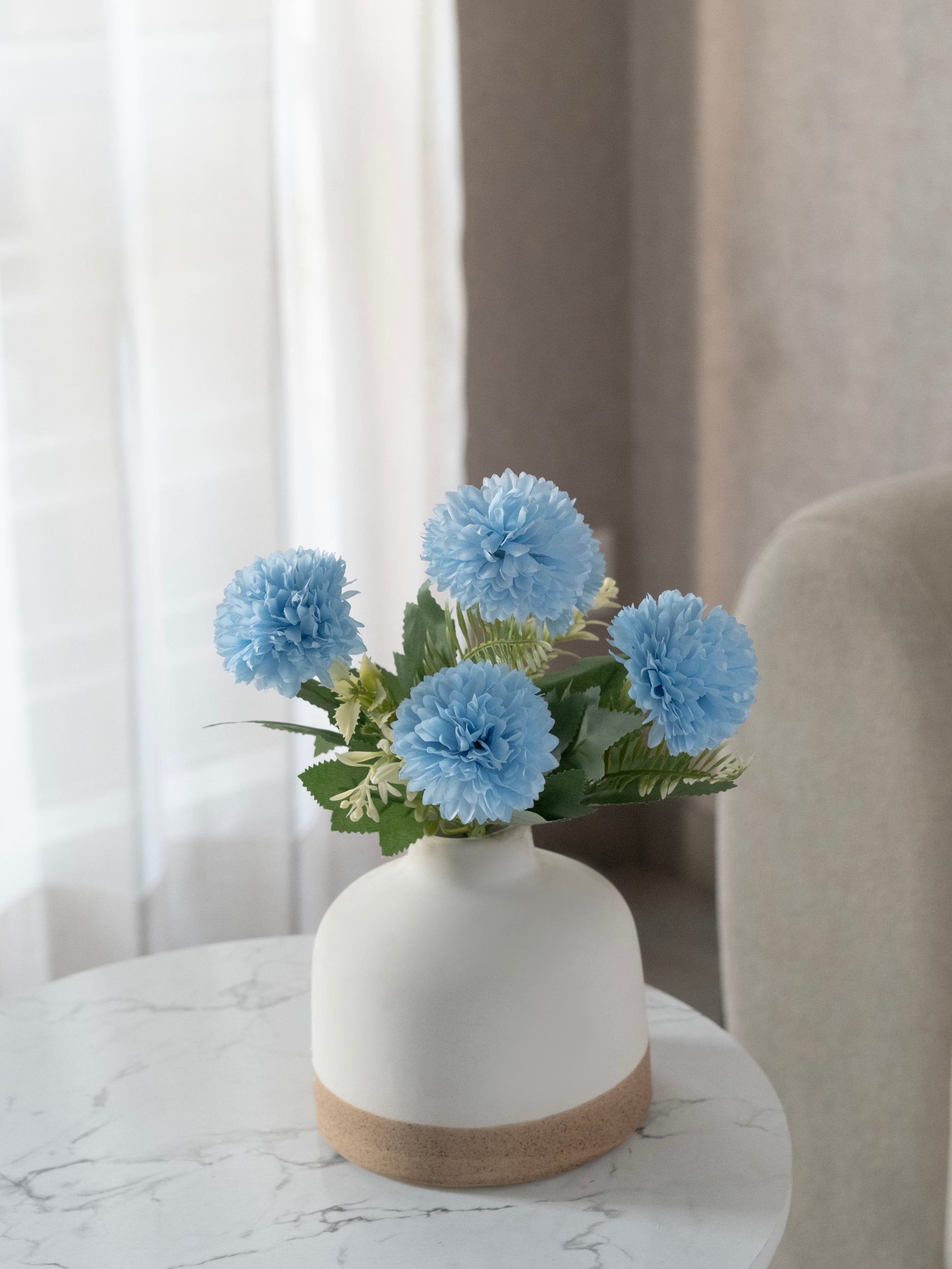 Enhance your décor with this beautiful artificial mum flower bunch, designed with full, layered petals for a rich and realistic appearance. The vibrant blooms paired with natural green leaves add a fresh and elegant charm to any space. Ideal for vases, centerpieces, event décor, and gifting. Long-lasting and zero maintenance required.