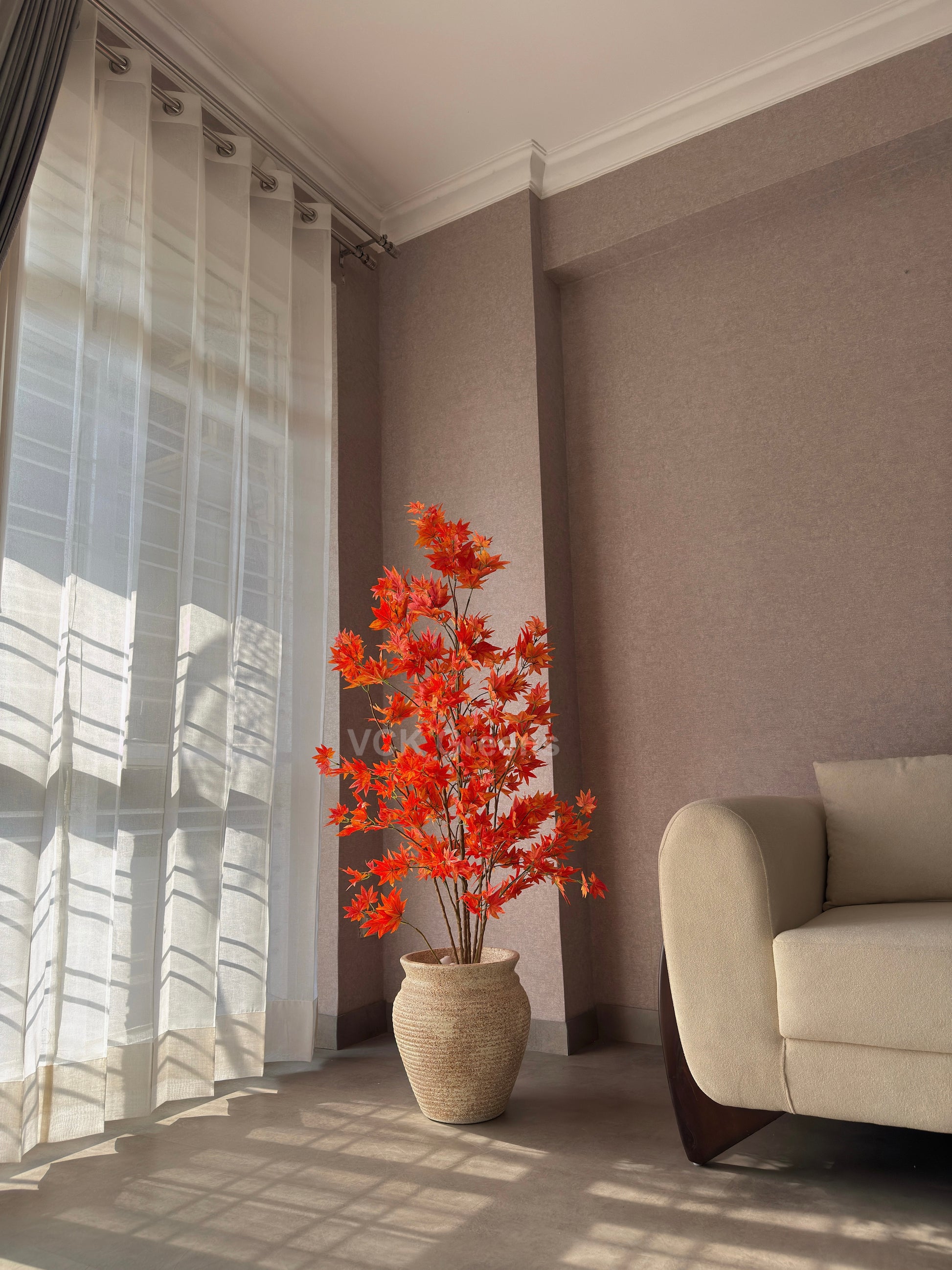 Add a pop of color and life to any space with our Artificial Orange Maple Leaf Plant, measuring at 5ft. Perfect for homes, offices, lobbies, gardens, and more, these faux plants have a natural appearance and are made with real touch leaves. Measuring 5ft and made of silk and plastic, they come without a pot for a hassle-free experience. Enjoy the serenity and natural connection these plants bring without the need for constant care. Suitable for both indoor and outdoor use.