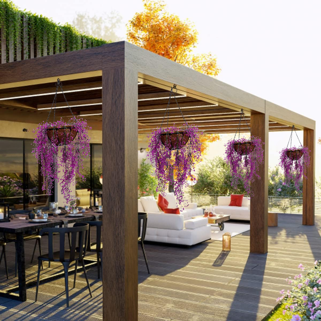 Our fake plants are made from environmentally safe plastic, harmless and stable, plastic greenery keep fresh color without any care. All they require is an occasional dusting and a wipe with a damp cloth to remove any dirt.