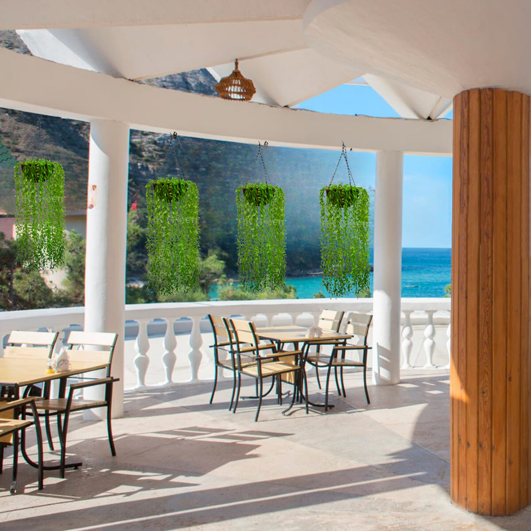 Artificial Willow Leaf Creepers Hanging Coco Basket 3.8ft