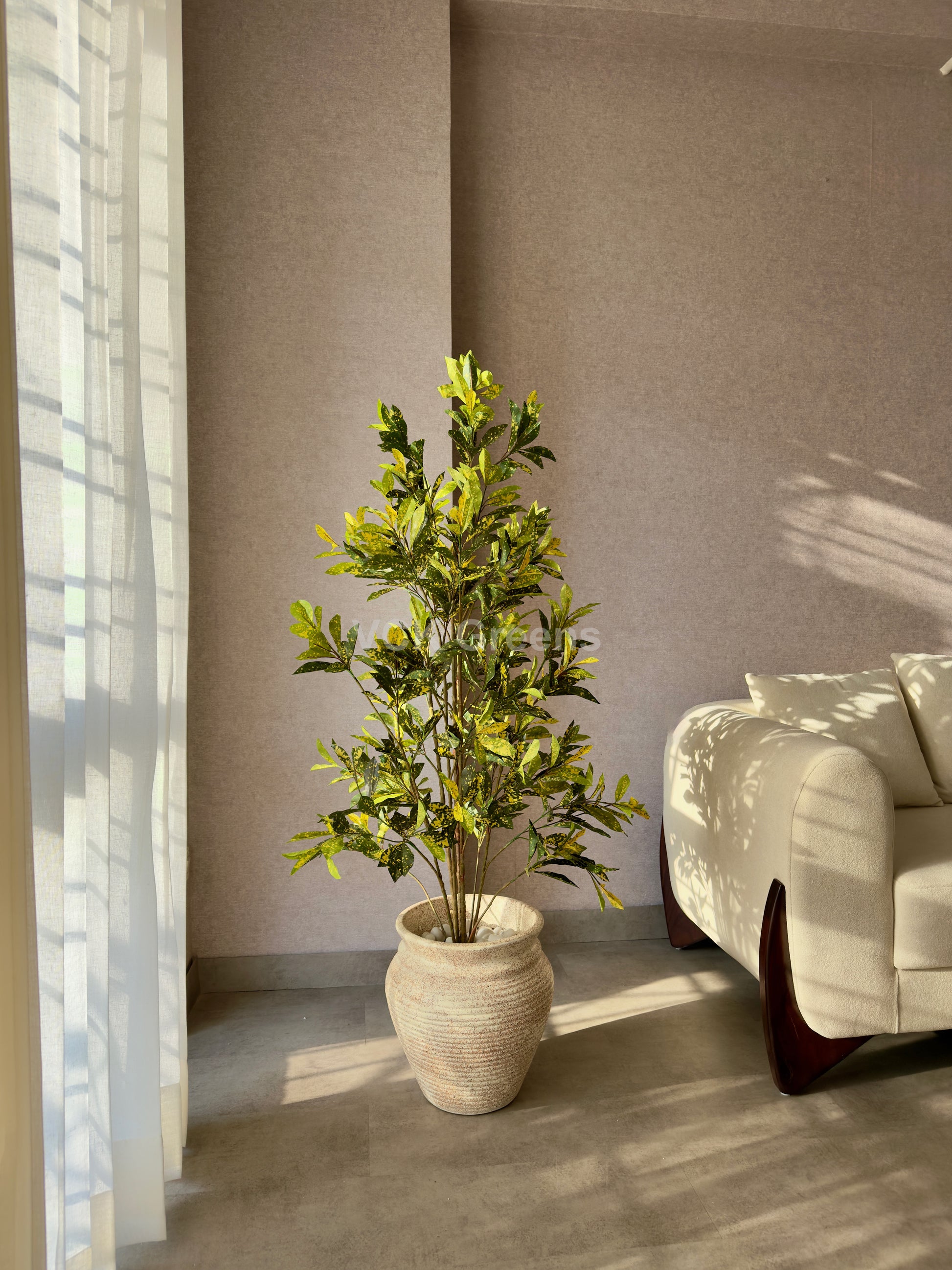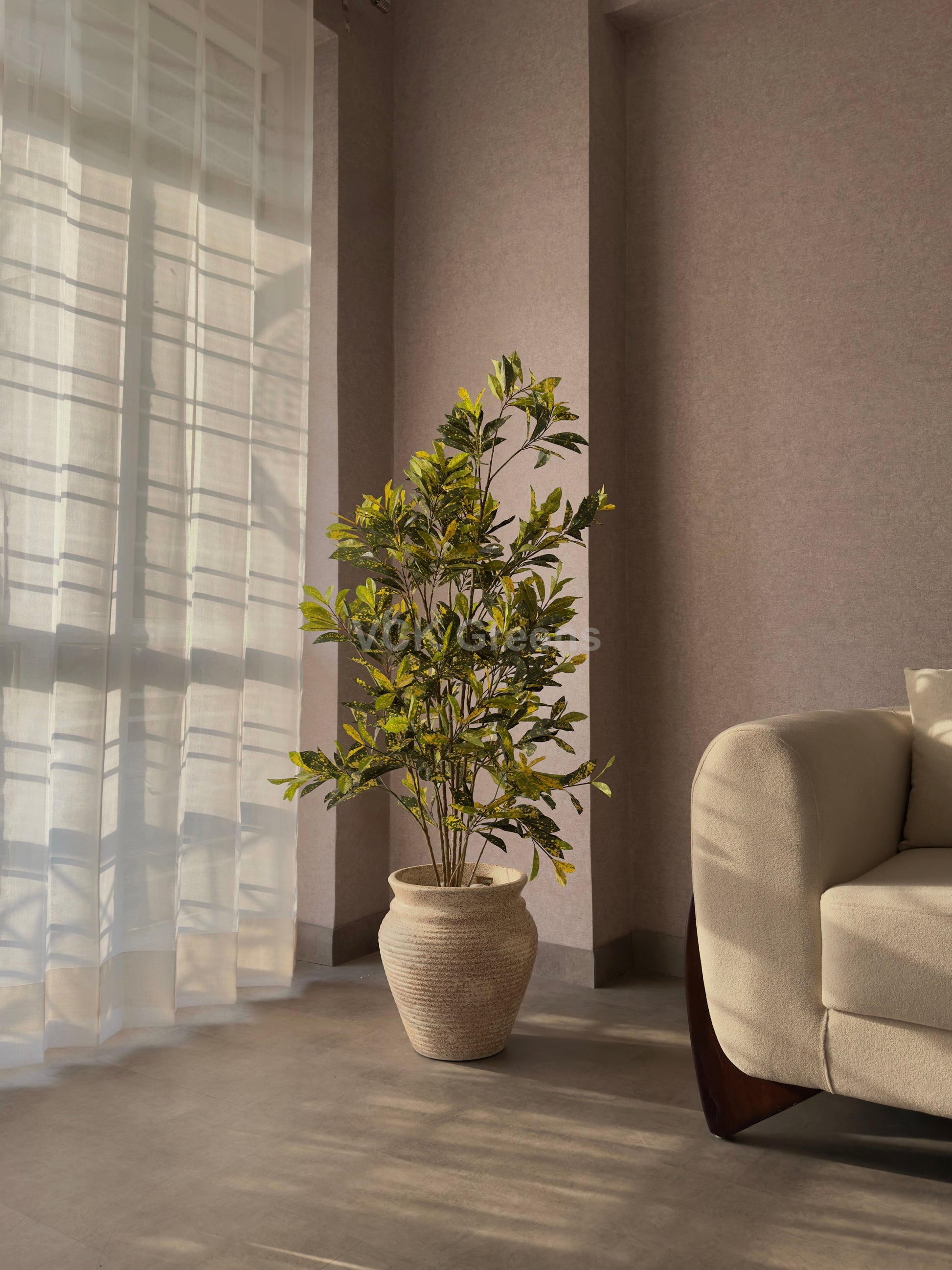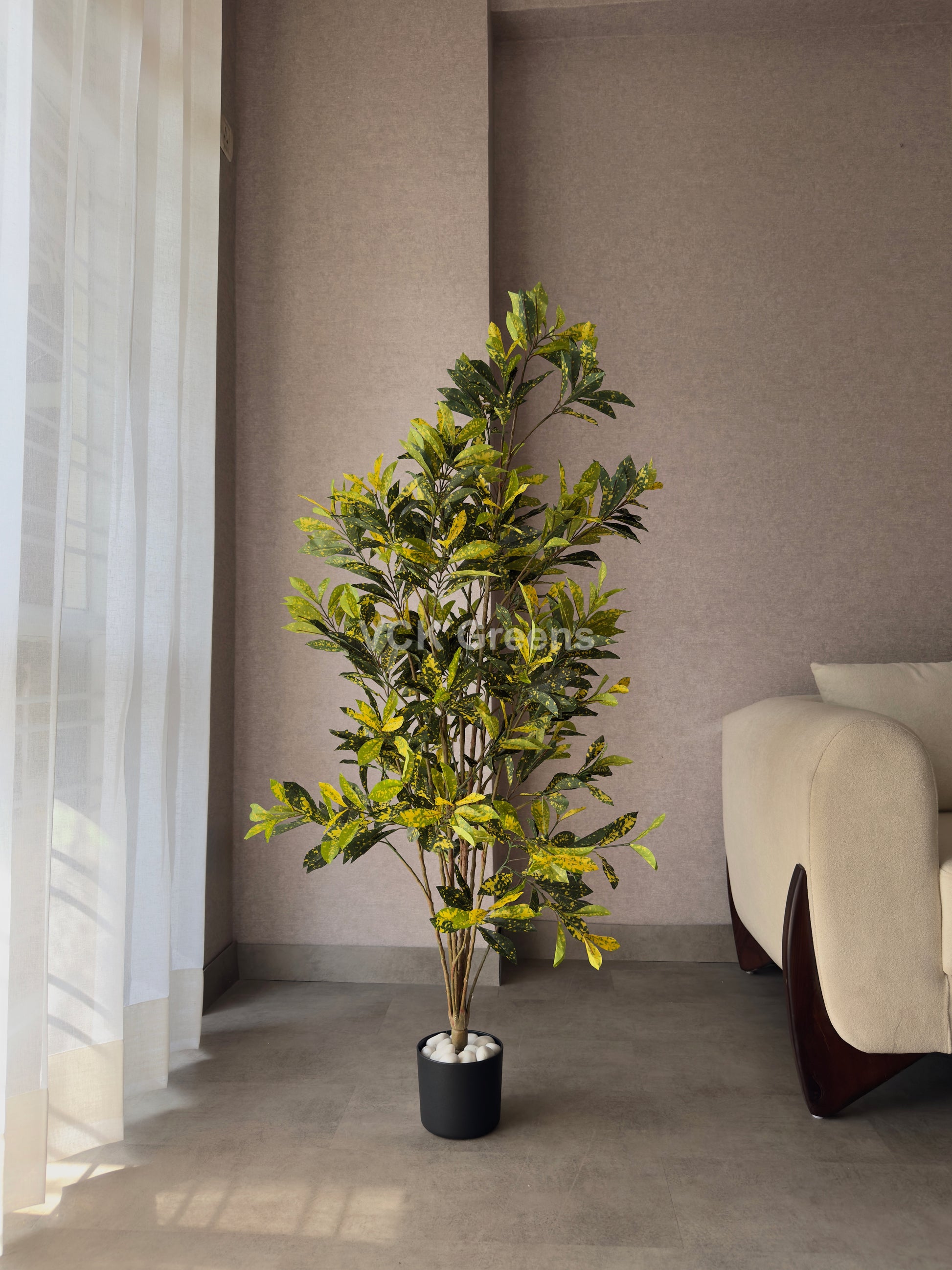 Brighten up any space with our Artificial Yellow Croton Plant! Standing at 5ft, it's the perfect addition to your home, office, cafe, banquet hall, or restaurant. With its vibrant yellow leaves, it's sure to add a pop of color and bring life to any room. Plus, it's low maintenance, making it ideal for busy spaces.