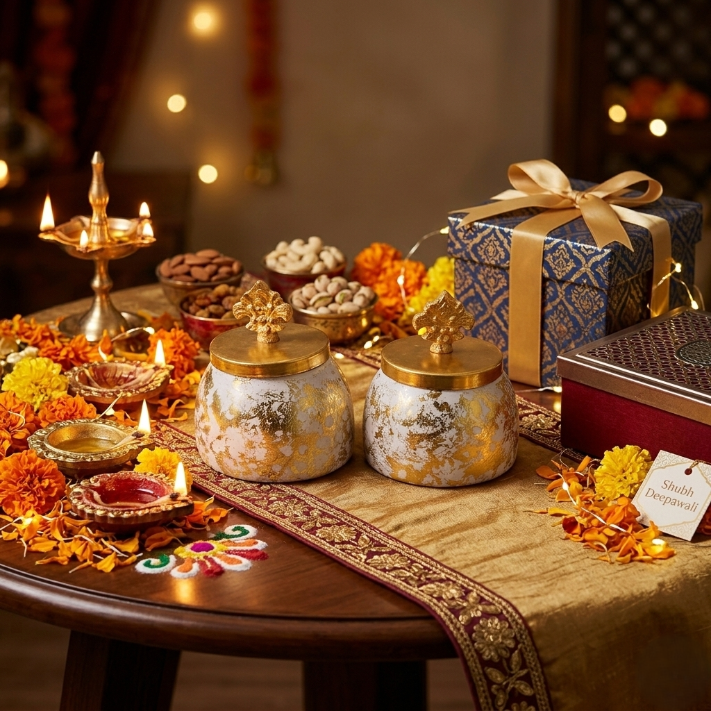 Gold & White Decorative Dry Fruit Jar Set (Set of 2)